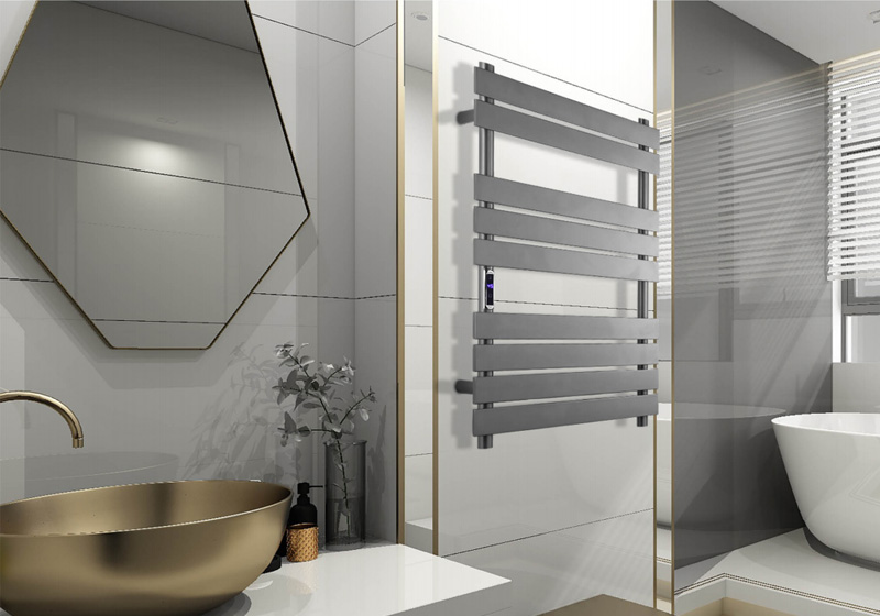 9桿時控溫控開關電熱毛巾架 9 bar time and temperature switch hea ed towel rail 材質Material:SS201/SS304 功率Power:220V/190W 表面Surface:Gun Black Painted 槍黑噴塑 尺寸Size:560*120*725mm 包裝Ctn size:580*70*760mm