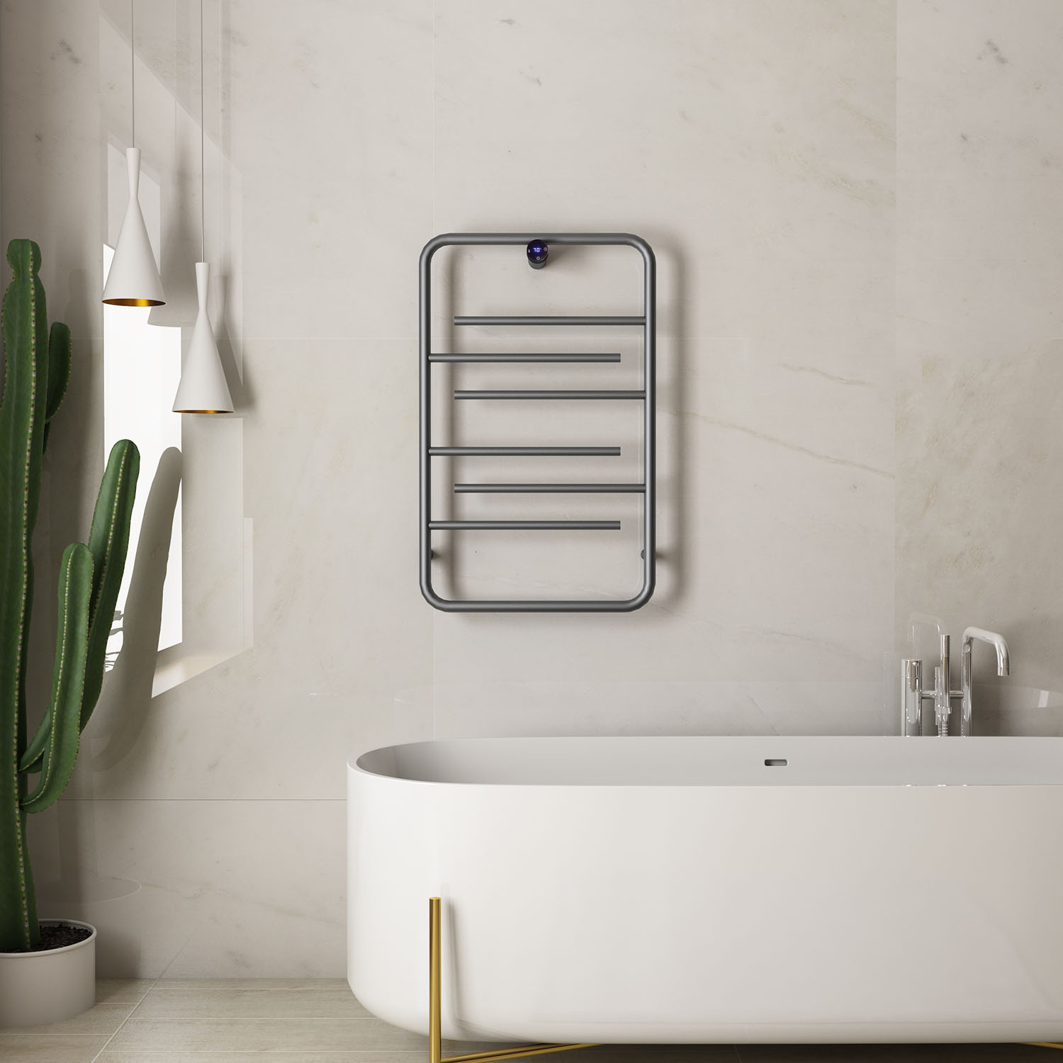 7桿液顯旋鈕開關電熱毛巾架 7 bar LCD display knob switch heated towel rail 材質Material:SS201/SS304 功率Power:220V/75W 表面Surface:Gold 金色 尺寸Size:540*75*832mm 包裝Ctn size:590*75*880mm